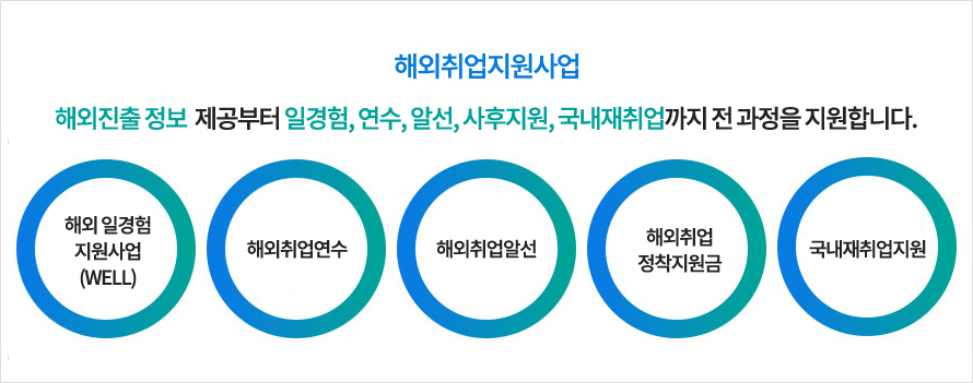 ÇØ¿Ü ±¸Àμö¿ä¿¡ ºÎÇÕÇÏ´Â ¿¬¼öÇÁ·Î±×·¥ÀÇ Á¦°ø°ú ÀûÇÕ ±¸Á÷ÀÚ È®º¸, ¾çÁúÀÇ ÇØ¿Ü ÀÏÀÚ¸® ¹ß±¼ µîÀ» ÅëÇØ ´ëÇѹα¹ û³âÀÇ ÇØ¿Ü³ëµ¿½ÃÀå ÁøÃâ±âȸ¸¦ È®´ëÇÔÀ¸·Î½á ±Û·Î¹ú °æÀï·ÂÀ» °­È­Çϰí û³â½Ç¾÷·ü ¿ÏÈ­¿¡ ±â¿©